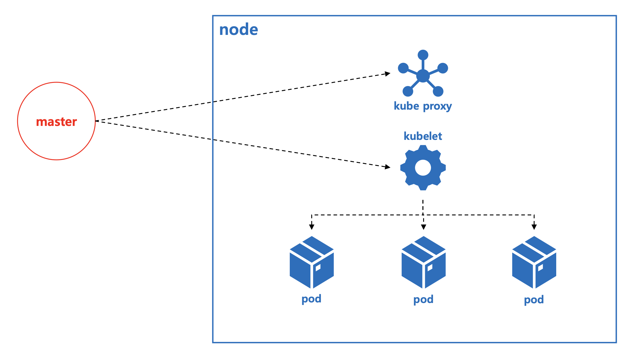 노드는 pod(컨테이너) 가 직접적으로 가동되는 서버입니다. 다수의 노드로 클러스터를 구성합니다. 하나의 노드도 다양한 구성요소가 존재하는데 대표적인것은 kubelet 과 Kube proxy , 그리고 pod 입니다.