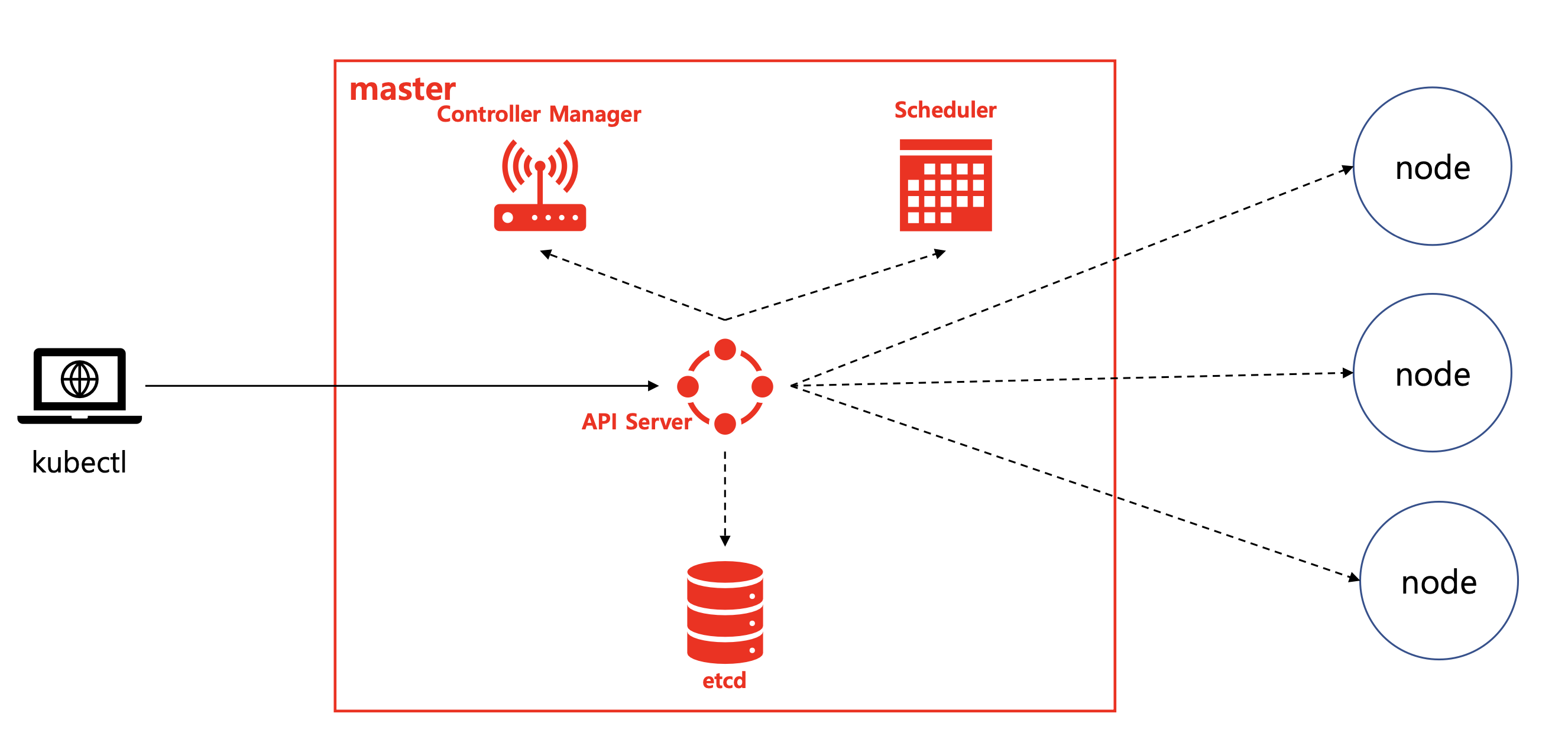 이러한 마스터의 주요 구성 요소로는 API Server, Scheduler, Controller Manager, etcd 가 있습니다.
